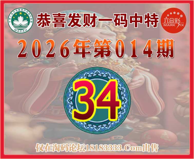 014期:【恭喜发财】 一码中特【34】开:26